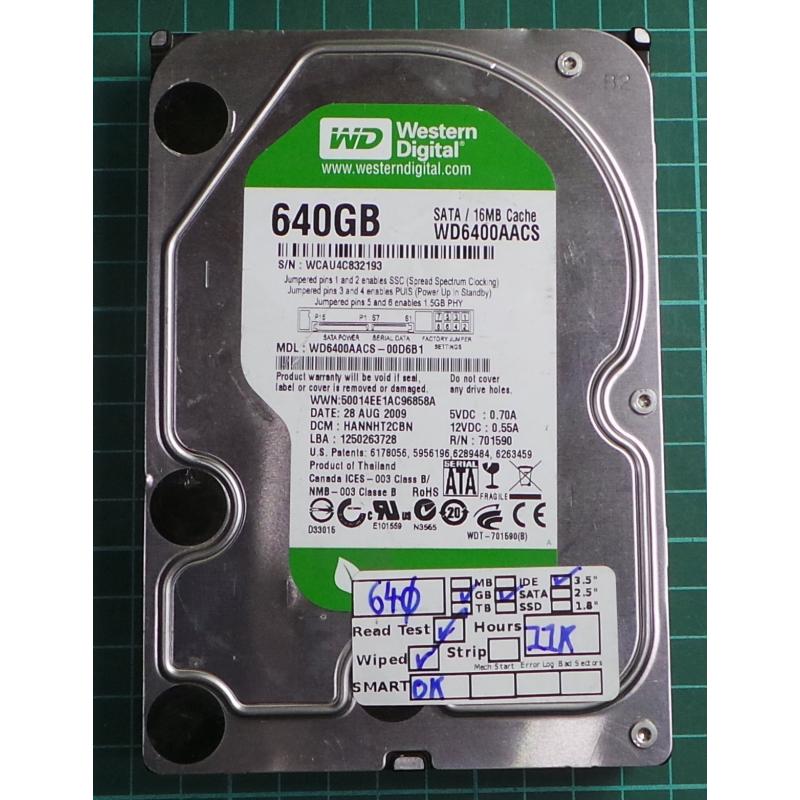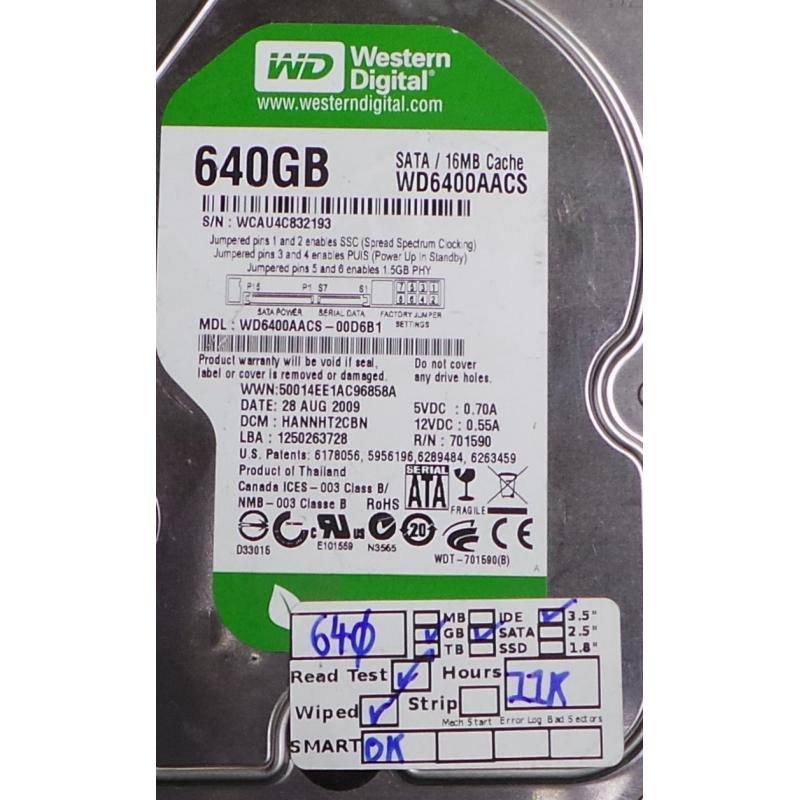 USED, Hard Disk, WD6400AACS, WD Caviar, WD6400AACS-00D6B1, Desktop, SATA, 640GB