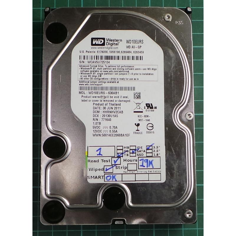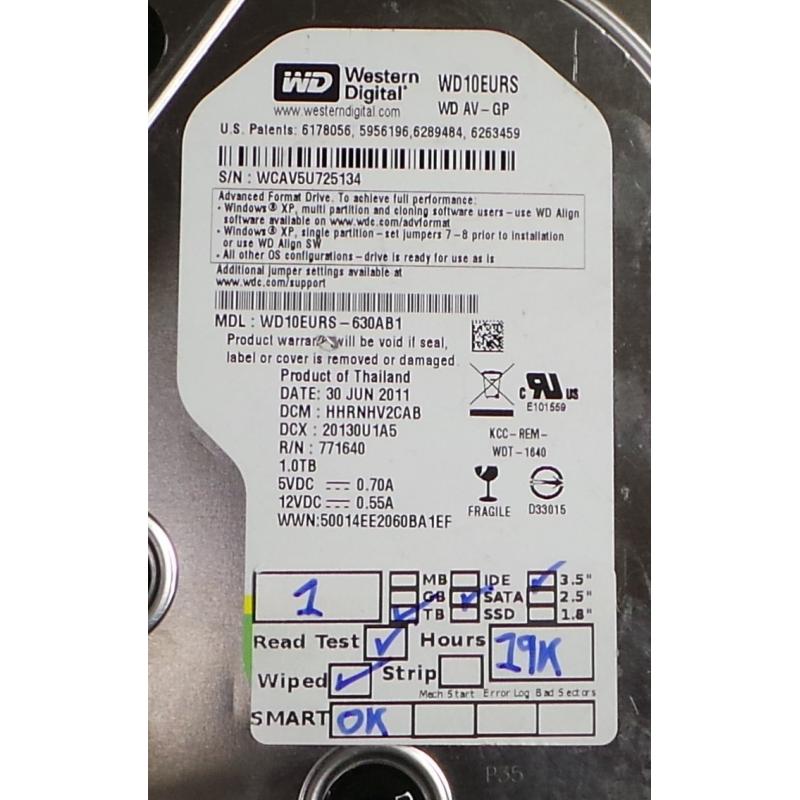USED, Hard Disk, WD10EURS, WD AV-GP, WD10EURS-630AB1, Desktop, SATA, 1TB