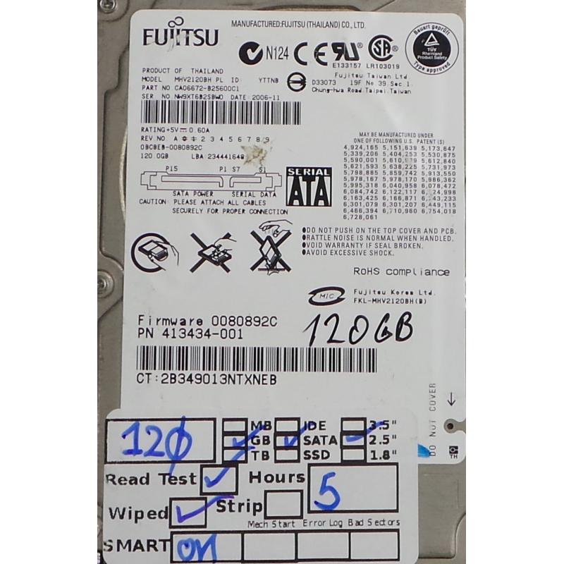 USED, Hard Disk, FUJITSU, MHV2120BH PL, P/N: CA06672-B25600C1, Laptop, SATA, 120GB