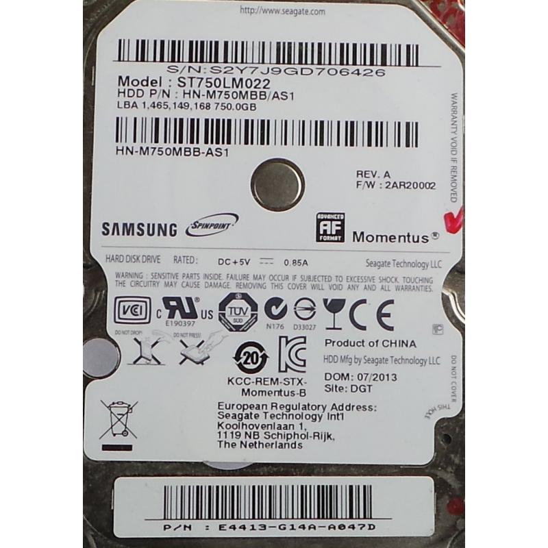 USED, Hard disk, SAMSUNG, ST750LM022, Firmware: 2AR20002, P/N: E4413-G14A-A047D, Laptop, SATA, 750GB