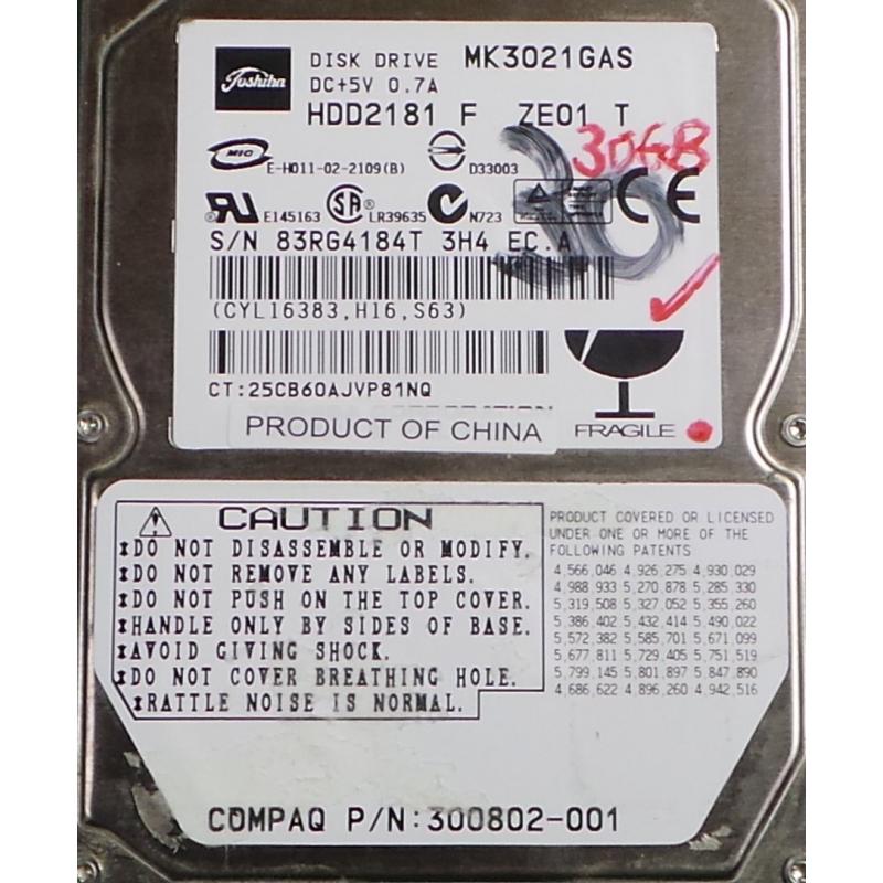 USED, Hard Disk, TOSHIBA, MK3021GAS, HDD2181 F ZE01 T, Laptop, IDE, 30GB