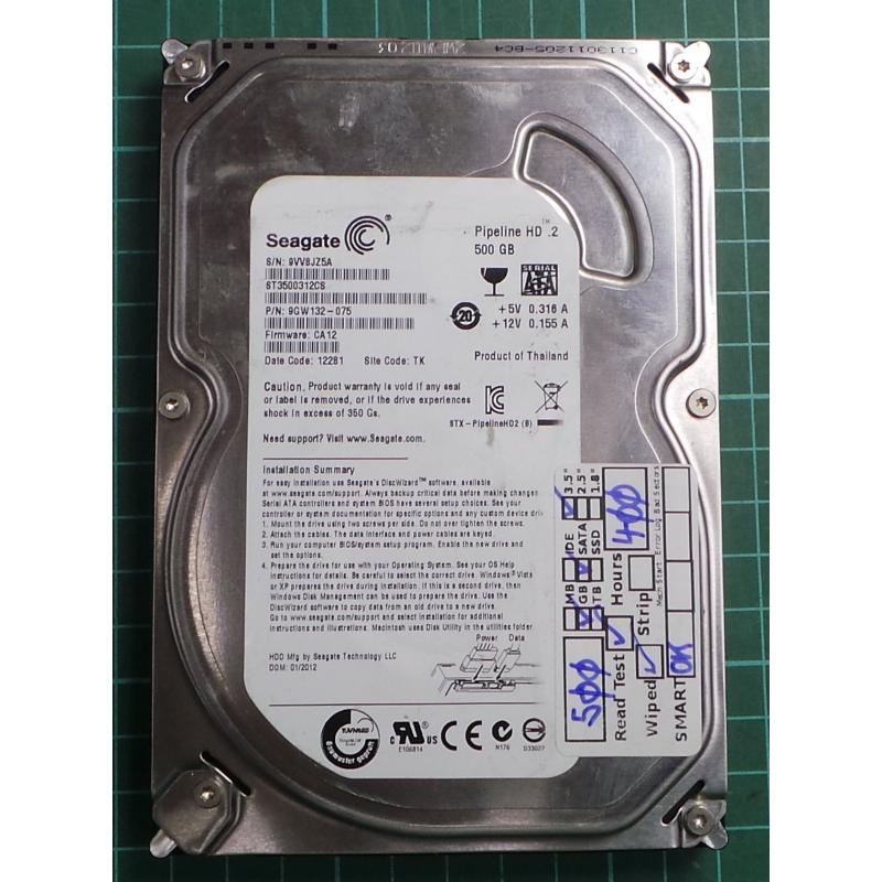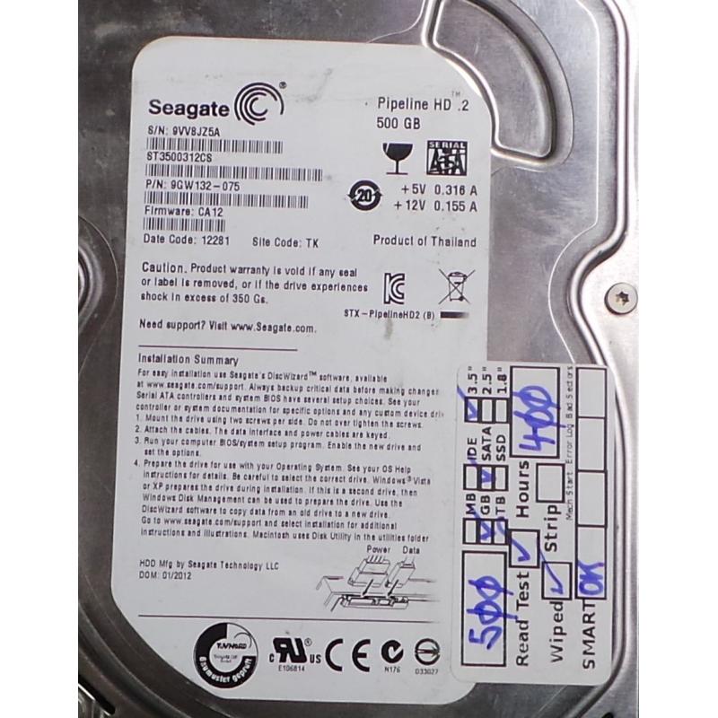 USED, Hard Disk, Pipeline HD.2, ST3500312CS, Seagate, P/N: 9GW132-075, Firmware: CA12, Desktop, IDE, 500GB