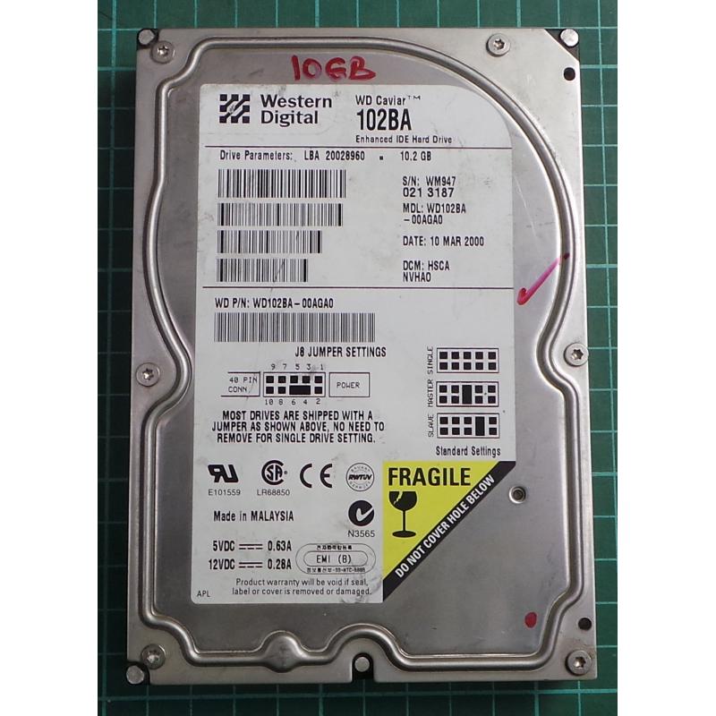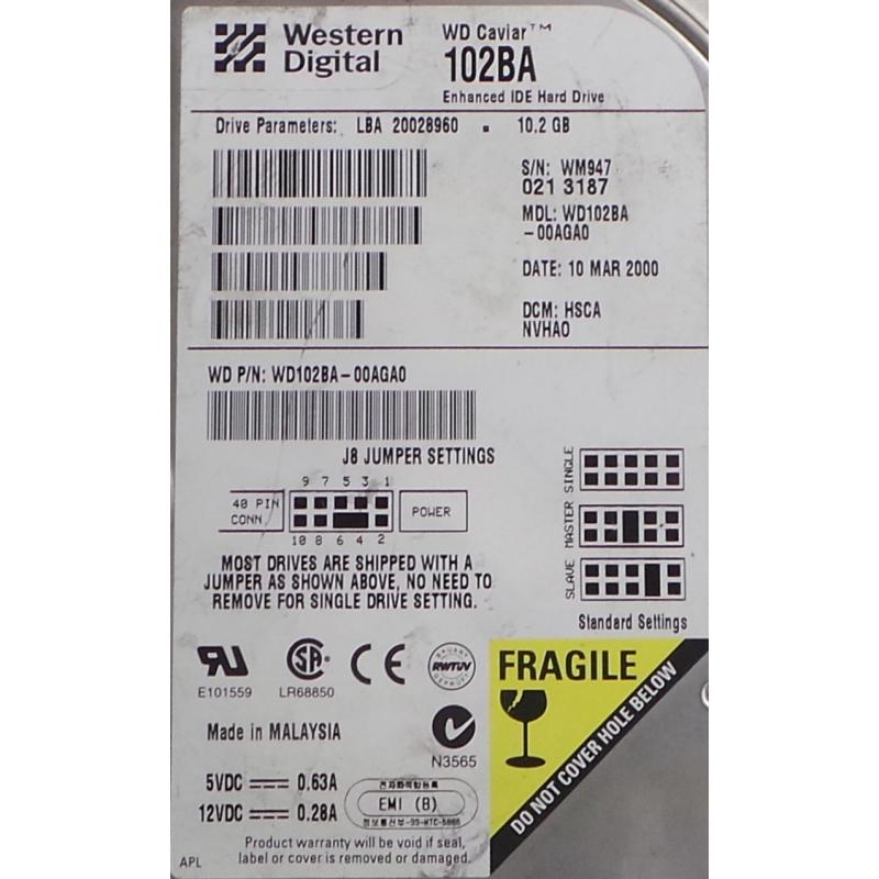 USED, Hard Disk, 102BA, WD Caviar, WD102BA-00AGA0, Desktop, IDE, 10GB