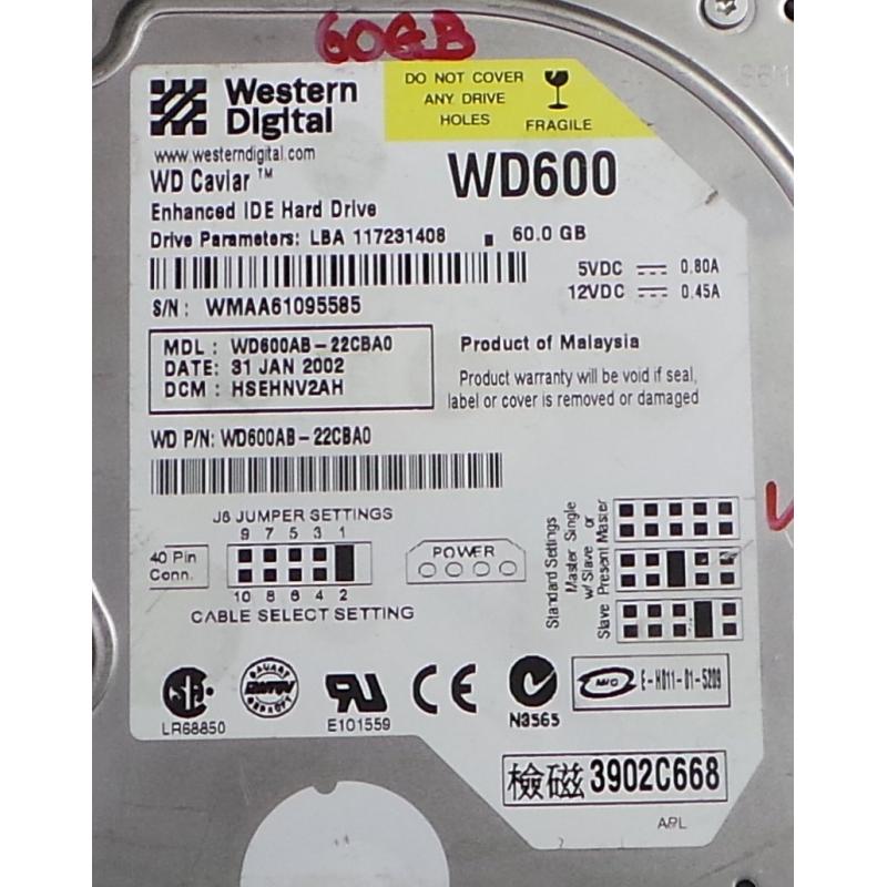 USED, Hard Disk, WD600, WD Caviar, WD600AB-22CBA0, Desktop, IDE, 60GB