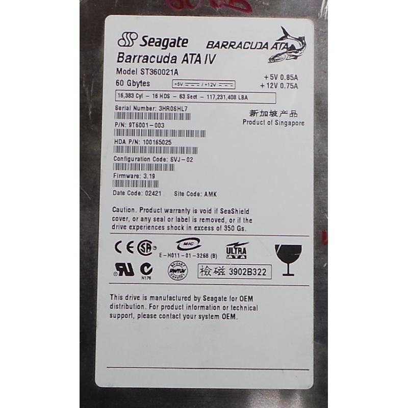 USED, Hard Disk, Barracuda ATA IV, ST360021A, Seagate, P/N: 9T6001-003, Firmware: 3.19, Desktop, IDE, 60GB