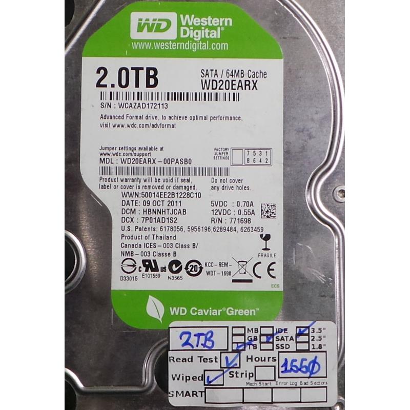 USED, Hard Disk, WD20EARX, WD Caviar, WD20EARX-00PASB0, Desktop, SATA, 2TB