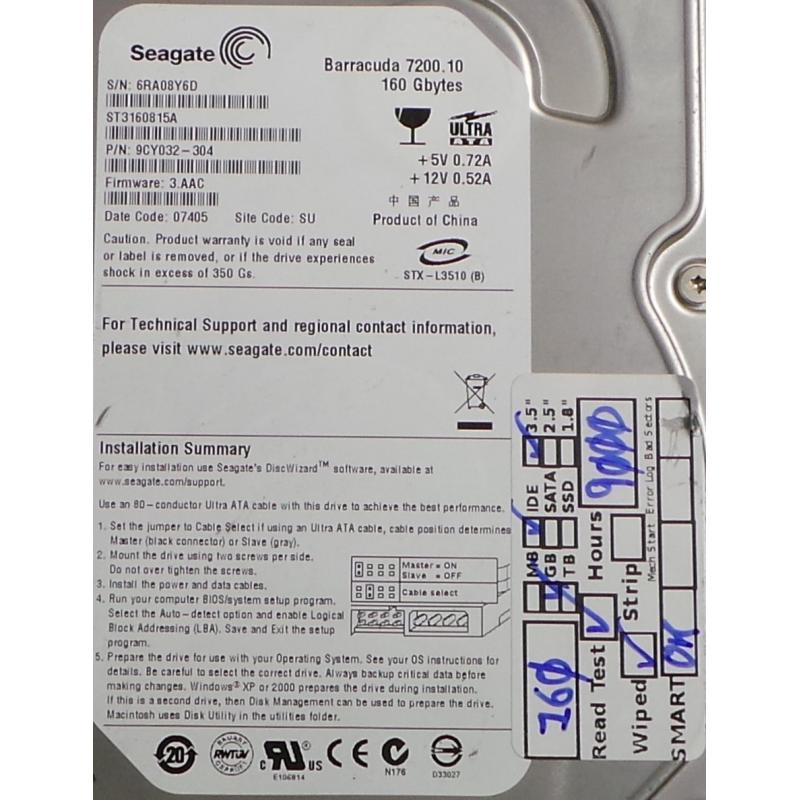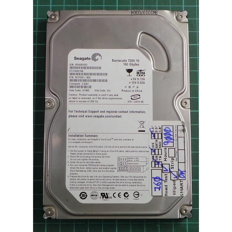 USED, Hard Disk, Barracuda 7200.10, ST3160815A, Seagate, P/N: 9CY032-304, Firmware: 3.AAC, Desktop, IDE, 160GB