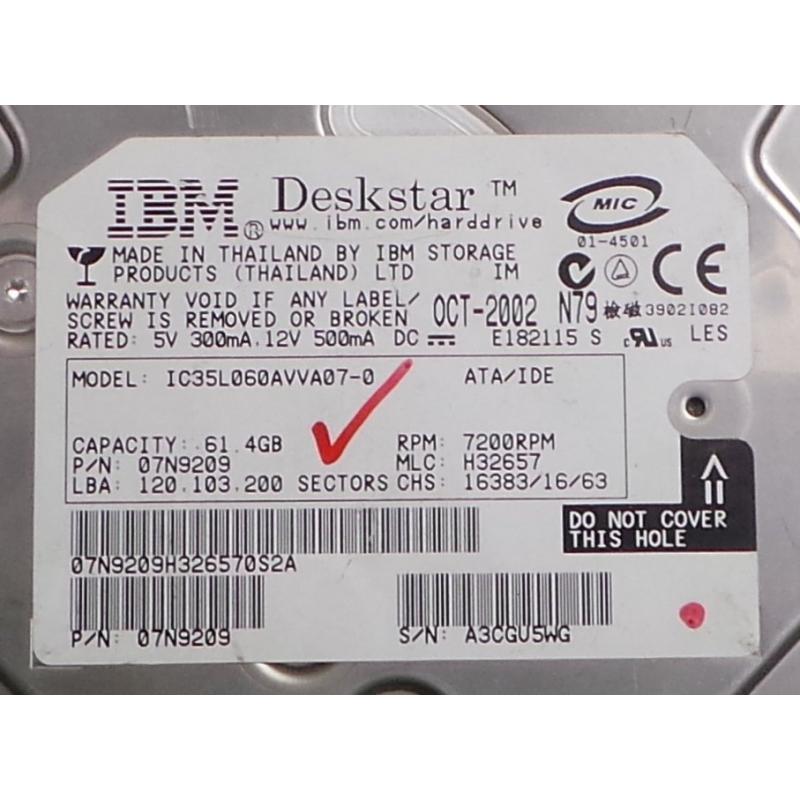 USED, Hard Disk, IBM, IC35L060AVVA07-0, P/N: 07N9209, Desktop, IDE, 60GB