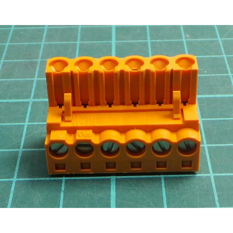 Zasouvací Svorkovnice, 5.08 mm, 6 Cest, 22AWG až 12AWG, Šroub, 15 A