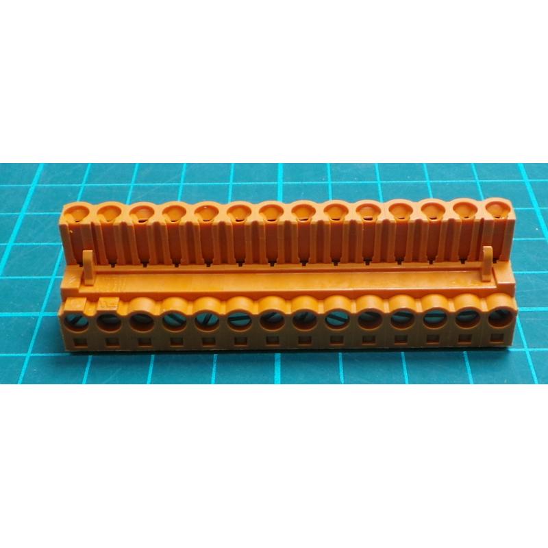 Pluggable Terminal Block, 5.08 mm, 14 Ways, 22AWG to 12AWG, Screw, 15 A