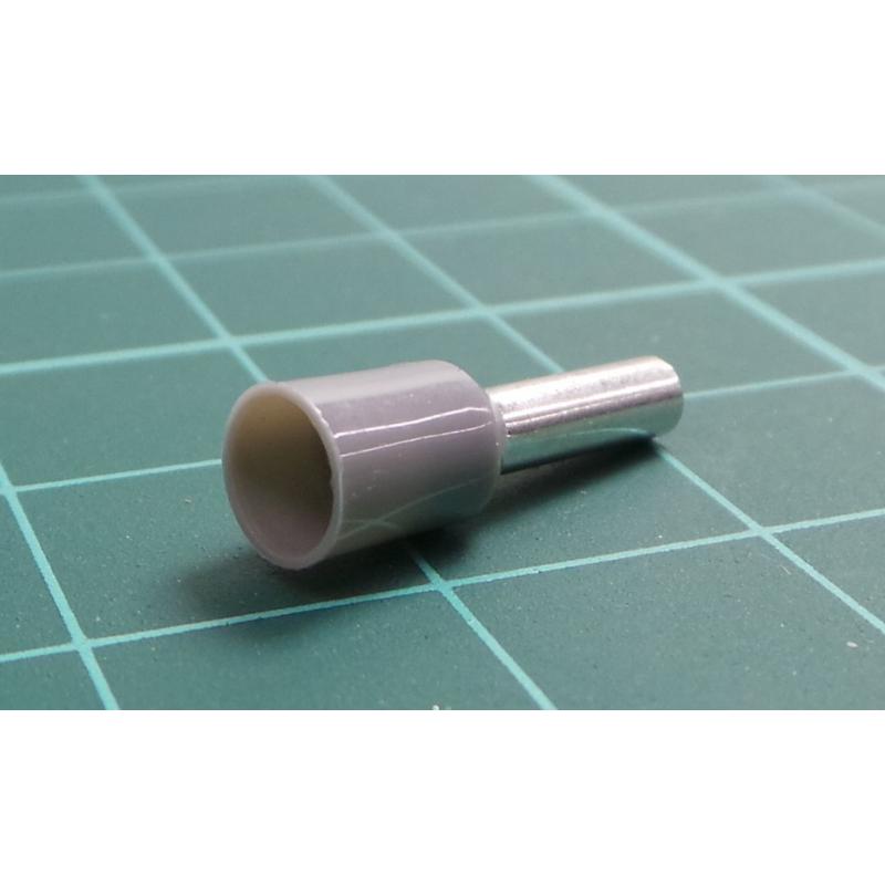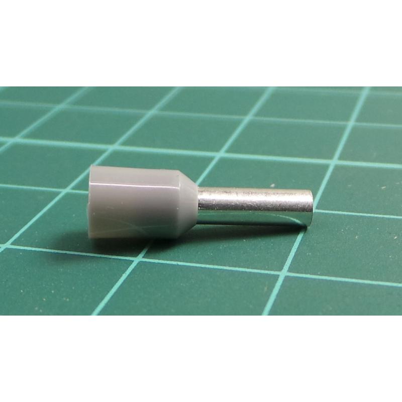 TLA, CEF2508F, Single Bootlace Ferrule, Grey, Cable Entry 2.5mm², Barrel Length 8mm