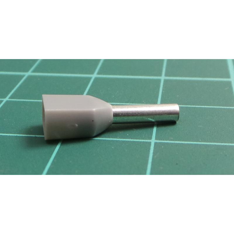 TLA, TCEF7508F, Twin Bootlace Ferrule, Grey, Cable Entry 0.75mm², Barrel Length 8mm