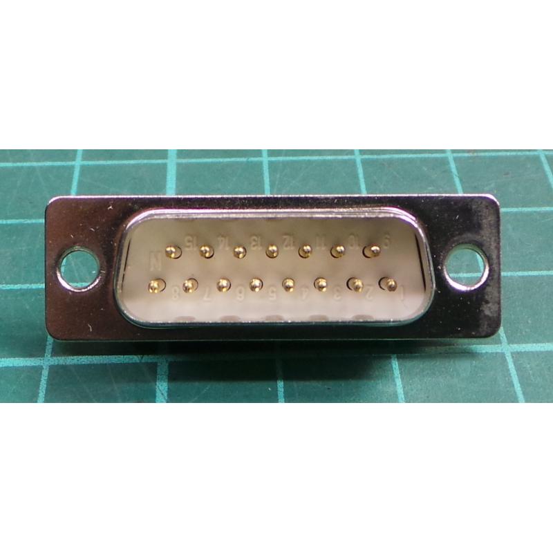 D Type, Male, 15 Pin, SD, Solder Bucket
