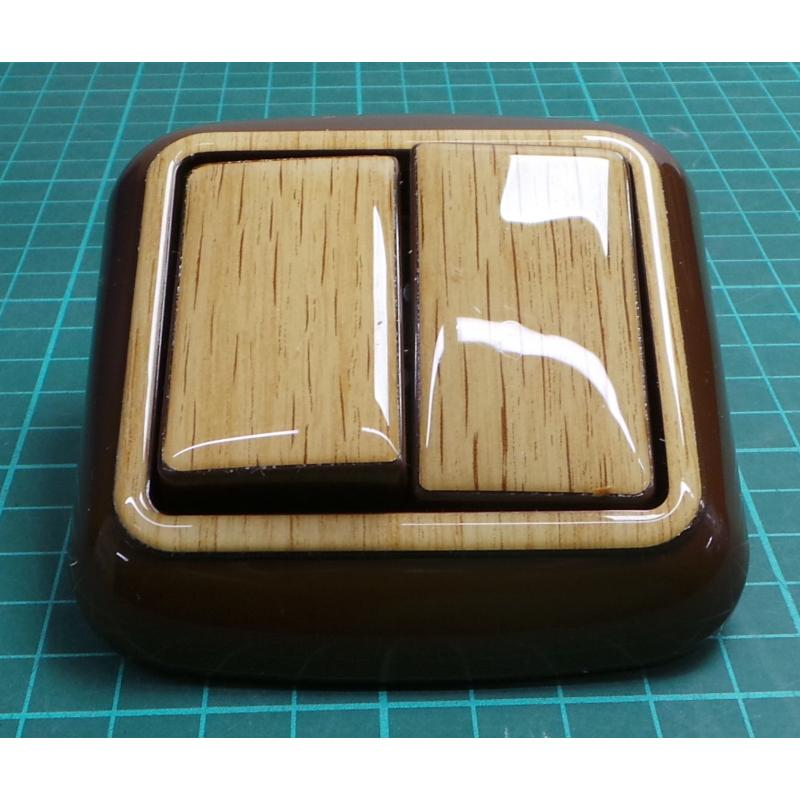 Euro Wall Switch, 2x SPST, one side common, c.5, Pine, IP20, 10A, 250VWPUL-2C