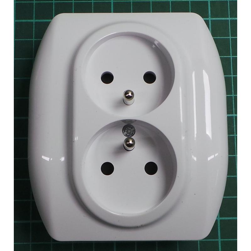 Dual Euro Wall Socket, White, IP20, 16A 250V