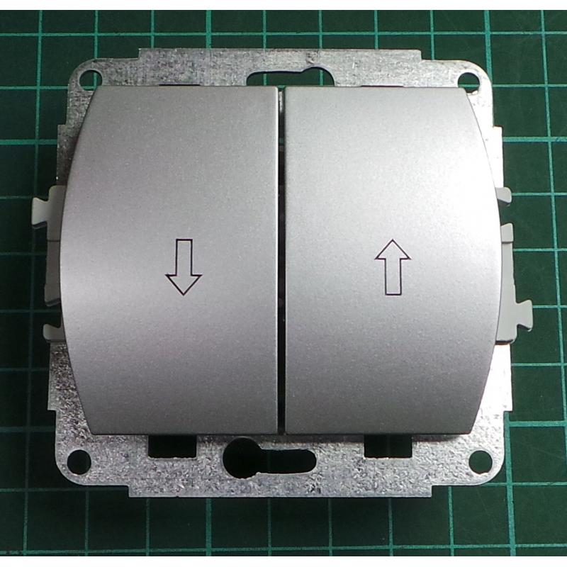 Euro Wall Switch, 2x Momentary SPST (Printed with up/down arrows), one side common, c.5, Silver, We don't have the plastic frame