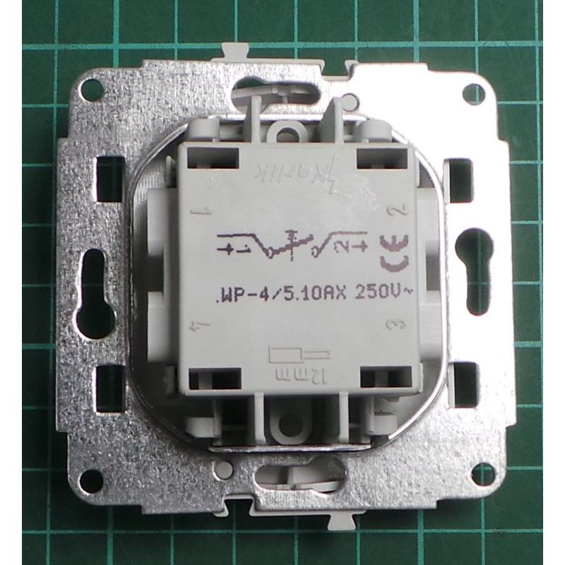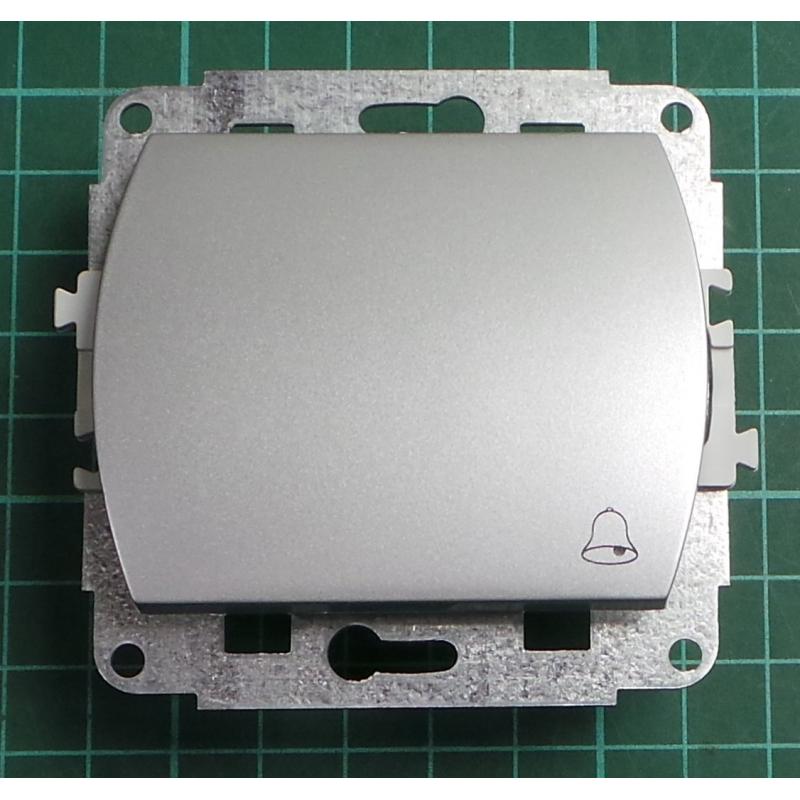 Euro Wall Switch, Momentary SPST (Printed with Bell symbol), c.1/0, Silver, We don't have the plastic frames for these, IP20, 10