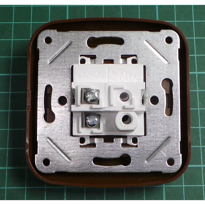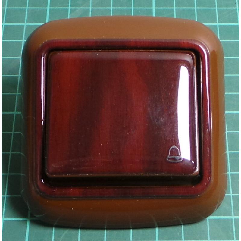 Euro Wall Switch, Momentary SPST (Printed with Bell symbol), c.1/0, Light Mahogany, IP20, 10A, 250V, WPUL-4A