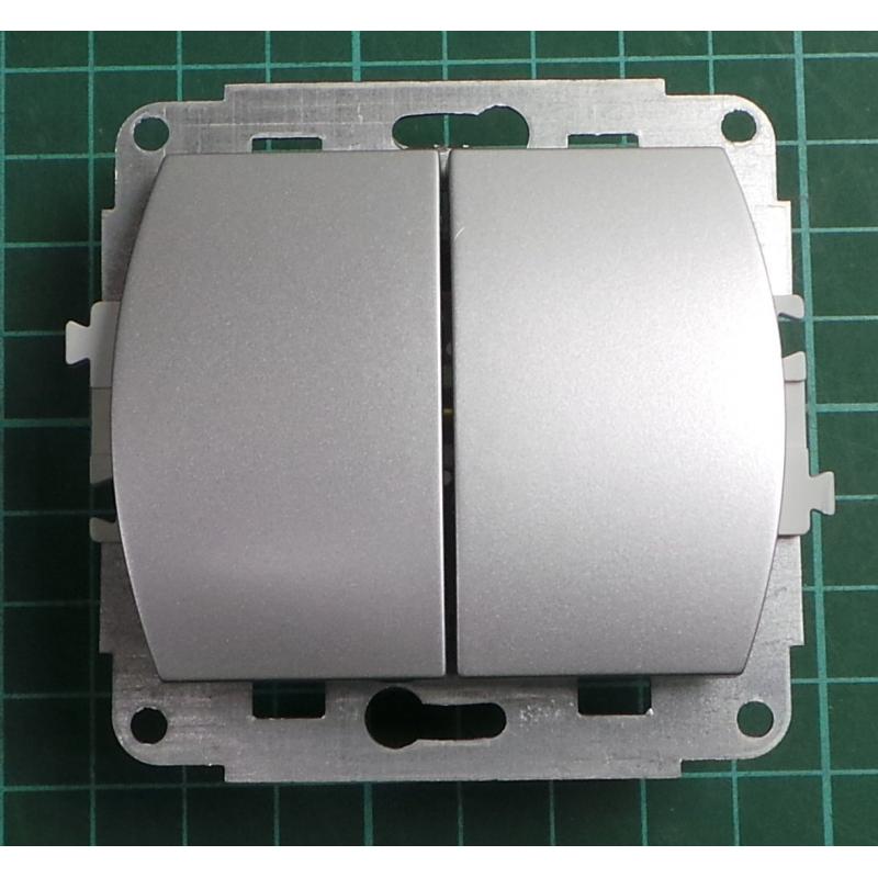 Euro Wall Switch, Single and Two Way Switch, c.1+6, Silver, IP20, 10AX, 250V, SWP-10