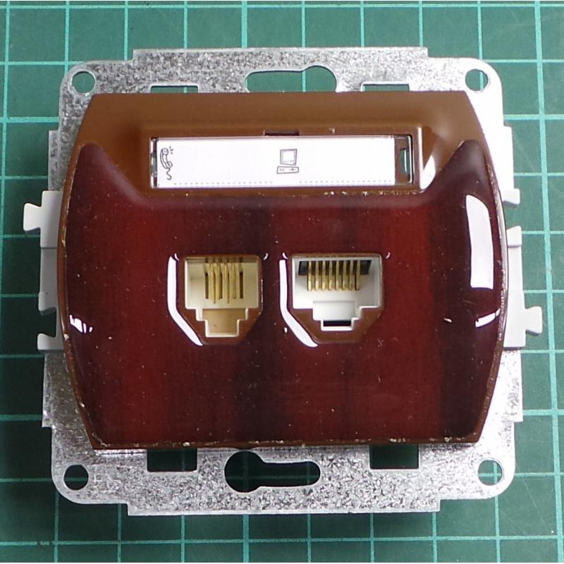 Single telephone + Ethernet outlet from euro wallbox, Dark Mahogany, We don't have the plastic frames for these, GTKA