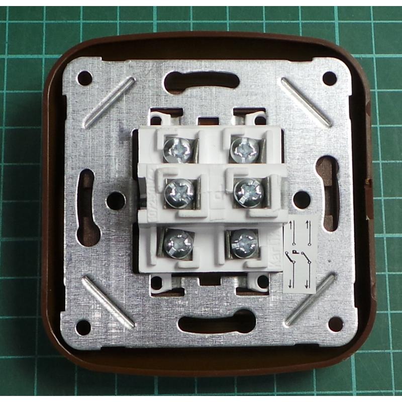Euro Wall Switch, Double Two Way Switch, c.6+6, Dark Mahogany, IP20, 10A, 250V, WPUL-7A, DONA LUX