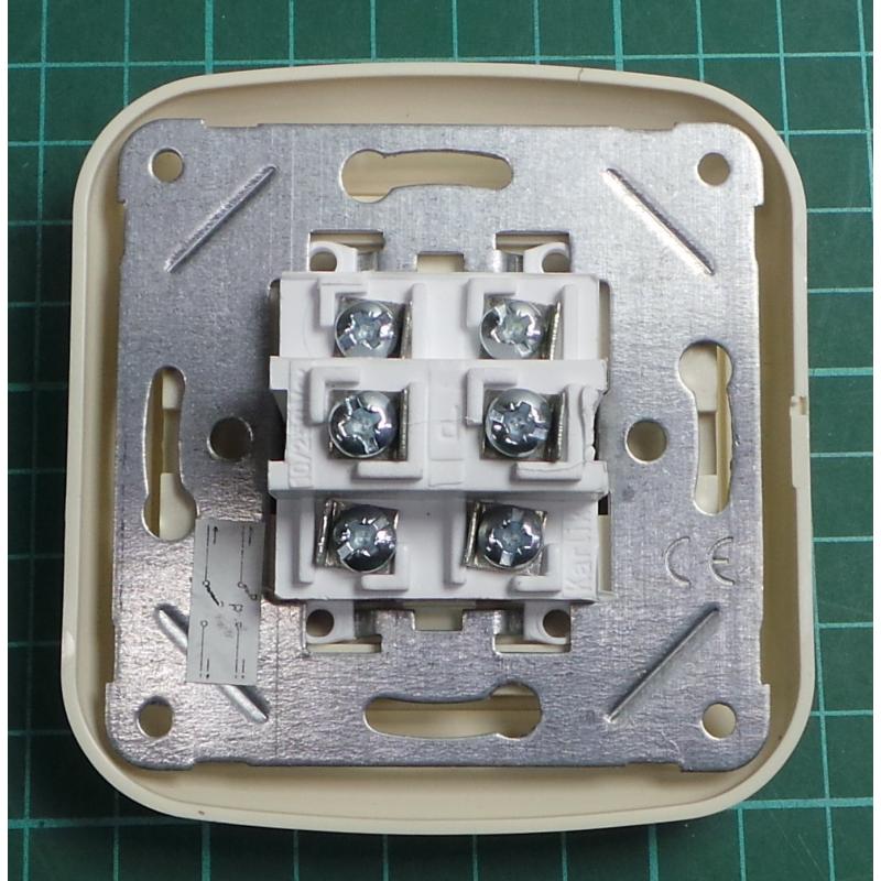 Euro Wall Switch, Double Two Way Switch, c.6+6, Beige, IP20, 10A, 250V, 1WPU-7, DONA